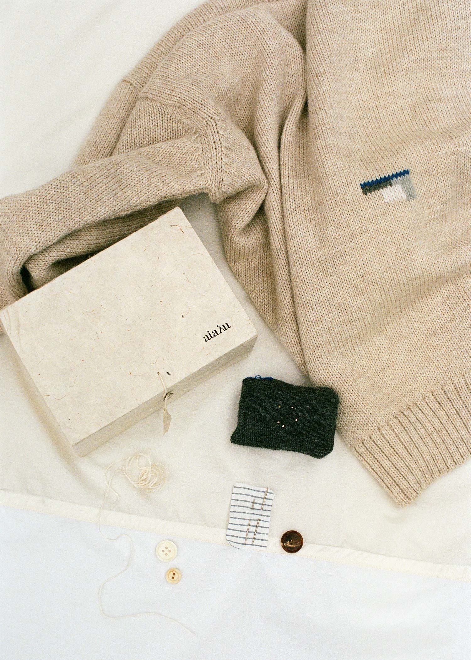 One-of-a-kind er unikke aiayu designs skabt af vores egne reparations-specialister, som genanvender varer, der ellers ville blive kasseret på grund af mindre fejl eller skader. I stedet for at lade disse produkter gå til spilde, forvandles de med omhu gennem reparationer og kreativt håndværk. Prisen afspejler både varens oprindelige værdi og den tid, der er investeret i håndarbejdet af reparationen. aiayu’s one-of-a-kind produkter vil løbende være tilgængelige online og i The aiayu Market, afhængigt af hvilke materialer, der er til rådighed.